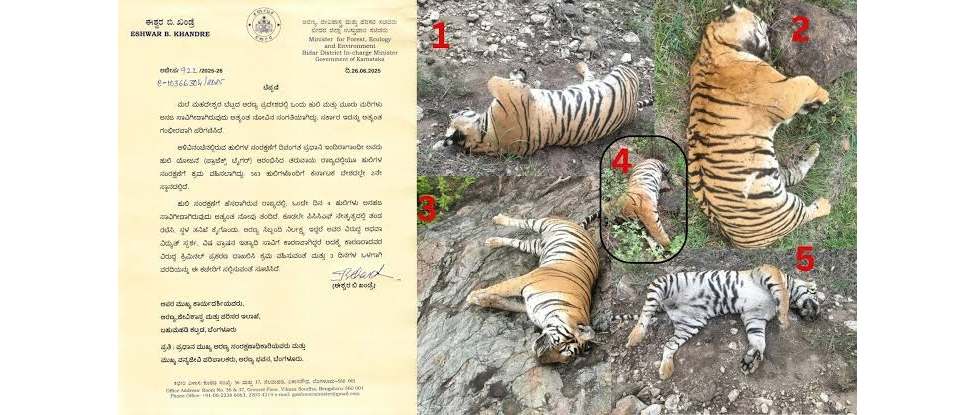 କର୍ଣ୍ଣାଟକର ଏମଏମ ହିଲ୍ସରେ ଅଭୟାରଣ୍ୟରେ ୫ଟି ବାଘର ମୃତ୍ୟୁ ହୋଇଛି। ବାଘୁଣୀ ଓ ୪ଟି ଶାବକଙ୍କ ମୃତ ଦେହ ଉଦ୍ଧାର କରିଛି ବନବିଭାଗ। ବାଘୁଣୀ ଗାଁ ପାଖରେ ଏକ ଗାଇକୁ ମାରି ଖାଇଦେଇଥିଲା। ମୃତ୍ୟୁ ପଛର କାରଣ ଖାଇବାରେ ବିଷ ପ୍ରକ୍ରିୟାରୁ ଜଣାପଡ଼ିଛି। ଏହି ଘଟଣା ହଇଚଇ ସୃଷ୍ଟି କରିଛି। ପ୍ରାରମ୍ଭିକ ତଦନ୍ତ ଅନୁସାରେ, ମୃତ୍ୟୁ ପଛରେ ବିଷକ୍ରିୟା। ଶବ ବ୍ୟବଛେଦ ରିପୋର୍ଟରୁ ସ୍ପଷ୍ଟ ହେବ। ଚାମରାଜନଗର ସର୍କଲର ମୁଖ୍ୟ ବନ ସଂରକ୍ଷକ ଟି.ହରିଲାଲ କହିଛନ୍ତି, ବାଘୁଣୀ ଓ ତାର ୪ ଶାବକକୁ ମିନିୟମ କ୍ଷେତ୍ର ହୁଗ୍ୟମ ରେଞ୍ଜରେ ଠାବ ହୋଇଛି। ବାଘ ମୃତ୍ୟୁ ବିଲକୁଲ ସ୍ୱାଭାବିକ ନୁହେଁ। ବାଘୁଣୀ ଗାଁର ଏକ ଗାଈକୁ ଶୀକାର କରି ଜଙ୍ଗଲକୁ ନେଇ ଖାଇଥିଲା। ଆଶଙ୍କା କରାଯାଉଛି, କିଛି ଗ୍ରାମବାସୀ ମାଂସରେ ବିଷ ମିଶାଇଦେଇ ଛାଡିଦେଇଥିଲେ। ଏହାକୁ ଖାଇ ବାଘୁଣୀ ଓ ଚାରି ଶାବକଙ୍କ ମୃତ୍ୟୁ ହୋଇଛି। କର୍ଣ୍ଣାଟକ ଜଙ୍ଗଲ ଓ ପରିବେଶ ମନ୍ତ୍ରୀ ଇଶ୍ୱର ବି ଖାନ୍ଦ୍ରେ ମାମଲାର ଗମ୍ଭୀରତା ଦୃଷ୍ଟିରୁ ୩ ଦିନ ଭିତରେ ରିପୋର୍ଟ ତଲବ କରିଛନ୍ତି। ୫ଟି ବାଘର ଦିନକ ଭିତରେ ମୃତ୍ୟୁ ବେଶ୍ ଚିନ୍ତାଜନକ ଅଟେ। ଦୋଷୀଙ୍କୁ କୌଣସିମତେ ବରଦାସ୍ତ କରାଯିବନି। ମାମଲାର ଯାଞ୍ଚ ମୁଖ୍ୟ ପ୍ରଧାନ ବନସଂରକ୍ଷକଙ୍କ ଦ୍ୱାରା କରାଯିବ। ତତ୍କାଳ ଘଟଣାସ୍ଥଳକୁ ଯାଇ ବିସ୍ତୃତ ଯାଞ୍ଚ ଲାଗି ନିର୍ଦେଶ ଦିଆଯାଇଛି। କର୍ଣ୍ଣାଟକ ଦେଶର ଦ୍ୱିତୀୟ ସର୍ବାଧିକ ବାଘ ରାଜ୍ୟ ଅଟେ। ମୋଟ୍ ୫୬୩ ବାଘ ଅଛନ୍ତି। ଏତିକିବେଳେ ୫ଟି ବାଘର ମୃତ୍ୟୁ ଗମ୍ଭୀର ଚିନ୍ତାଜନକ ପରିସ୍ଥିତି ସୃଷ୍ଟି କରିଛି। ଏମଏମ ହିଲ୍ସ ଅଭୟାରଣ୍ଯ ୯୦୬ ବର୍ଗକିଲୋମିଟର ପରିବ୍ୟାପ୍ତ। ଏହି କ୍ଷେତ୍ରକୁ ବ୍ୟାଘ୍ର ସଂରକ୍ଷିତ ପ୍ରକଳ୍ପ ଘୋଷଣା କରିବାକୁ ୨୦୨୩ ବିଧାନସଭା ନିର୍ବାଚନ ପୂର୍ବରୁ ପ୍ରତିଶୃତି ଦିଆଯାଇଥିଲା। କିନ୍ତୁ ତା ପରଠୁ ଏହା ଶୀତଳଭଣ୍ଡାରରେ ଅଟକିଛି।