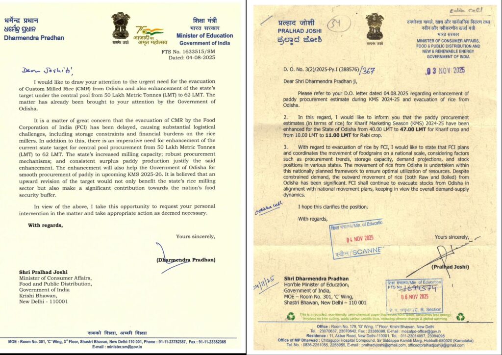 ପ୍ରକାଶ ଥାଉ କି, କେନ୍ଦ୍ରମନ୍ତ୍ରୀ ଶ୍ରୀ ପ୍ରଧାନ ଗତ ଅଗଷ୍ଟ ୪ ତାରିଖରେ କେନ୍ଦ୍ରମନ୍ତ୍ରୀ ଶ୍ରୀ ଯୋଶୀଙ୍କୁ ଭେଟି ଏ ବିଷୟରେ ଆଲୋଚନା କରିଥିଲେ । ବିଶେଷ ଭାବରେ ଓଡ଼ିଶାରେ ଖରିଫ ଋତୁ ଓ ରବି ଋତୁ ପାଇଁ ଉଷୁନା ଚାଉଳ ଉଠାଣ ସହ ନିର୍ଦ୍ଧାରିତ ଲକ୍ଷ୍ୟ ଠାରୁ ଅଧିକ ଧାନ ସଂଗ୍ରହ କରିବା ପାଇଁ ଆଲୋଚନା କରିବା ସହ ଚିଠି ଦେଇଥିଲେ ।